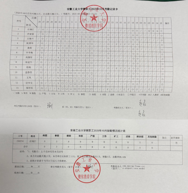 依据学校考勤工作的要求,继续教育学院2025年10月份考勤结果公示如下,如有异议,2个工作日内与院办联系,逾期视为无异议。