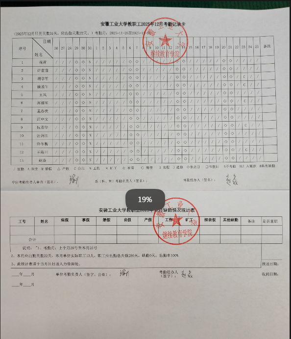 依据学校考勤工作的要求,继续教育学院2025年12月份考勤结果公示如下,如有异议,2个工作日内与院办联系,逾期视为无异议。